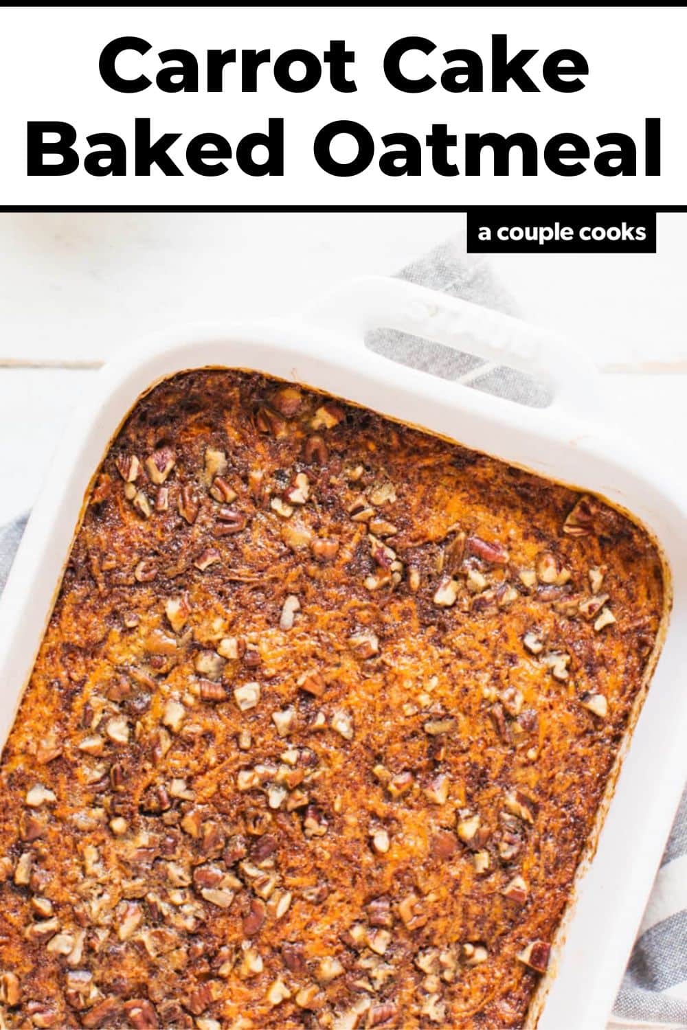 It really does feel like there’s a carrot cake season, starting at the tail end of winter with all of us dreaming for spring. So here’s a recipe where you can have your cake and eat it too (sorry): a carrot cake baked oatmeal made of mostly healthy ingredients that really does taste like cake!
